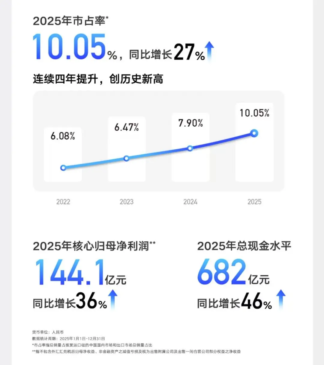 2025年第四季度,极氪品牌实现盈利转正,并在此后完成私有化成为吉利汽车全资附属公司。此前,极氪作为独立上市公司,利润仅按65.15%纳入,如今100%并表,意味着极氪每赚的一分钱都全额流入上市公司的口袋。