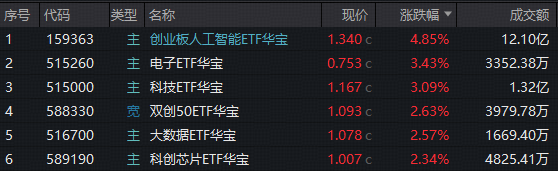 热门ETF方面,重仓光模块CPO龙头的创业板人工智能ETF华宝(159363)午后单边猛攻,收涨4.85%继续新高,单日爆量成交超12亿元,资金此前四日累计加码超2.3亿元!