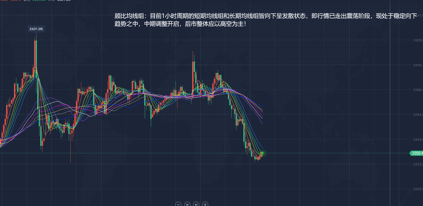 综上:结合盘面信号和波浪结构可知,目前行情已走出震荡区间,中期调整已开启,后市整体高空为主!不管行情处于何种结构之中,我们可知:2431只为短线高点,并未本轮上行的高点,整体的上行趋势并未改变,波浪的变化只是改变了中期调整的时间和幅度!上方关注2318-2330阻力,下方关注2288-2267支撑!