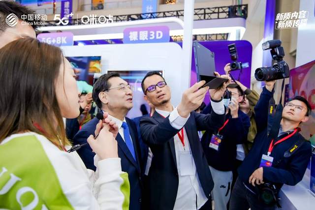 中央宣传部分管日常工作的副部长胡和平莅临参观中国移动咪咕展区,重点体验AI+数智人视频彩铃,通过AI技术即时生成了专属数智人视频彩铃,感受了AI+移动融媒的最新成果;现场观看指导传统经典大戏《龙凤呈祥视频》云演播、体育赛事裸眼3D新看法等新质内容,对中国移动推动新质生产力赋能网络视听产业高质量发展表示充分肯定。