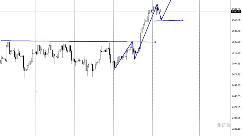 黄金今日出现了高位震荡走势,最高点在2587美元承压徘徊,最低点在触及2568美元一线企稳反弹。周线中阳站稳2530后,形成高位的中继偏多,但存在一波回测测试突破后的动作,所以周内需要完成这个动作后才能进一步走高。日线级别收录中阳后,延续逐步减弱。但偏多的态势依旧存在,只是涨势放缓,谨防冲高回落。高位的楔形末端。四小时级别上看,大阳站稳后连阳极端走高,那么一般这种情况,会出现换个斜率在走,也就是说存在一波调整后换一个斜率平缓的上升形态。综合以上分析,张亿富认为:黄金高位震荡中,今日操作上考虑高空低多策略,上方关注2590-2600美元阻力,下方关注2565-2555美元支撑。今日黄金实盘在2575-2578空一次,获利在2568一带。