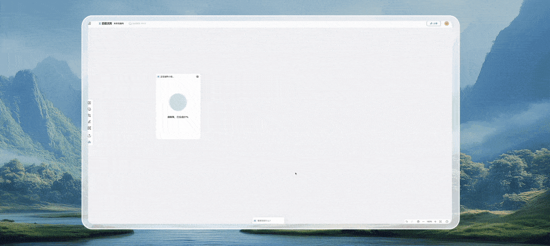 在这次的大会上,百度文库和百度网盘联合发布了「自由画布」,其充分融合了二者优势,能够实现输入自由、编辑和创作自由、分享自由。