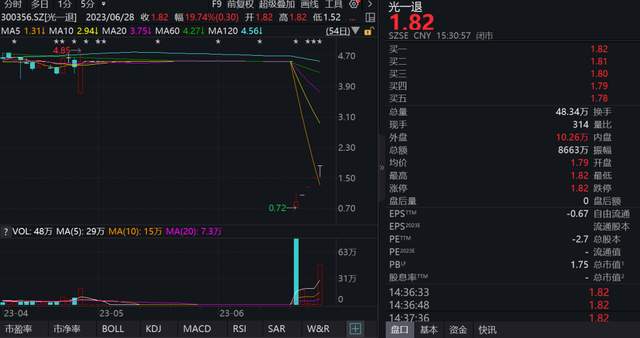 截至6月28日收盘,处于退市整理期的光一科技已经连续四个交易日“20cm”涨停。