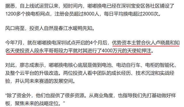 据猎云网报道,段永平哥哥段力平曾投资嘟嘟换电。