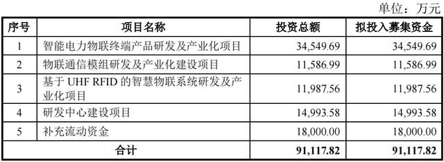 佳源科技此次IPO拟募集资金9.11亿元,募资拟用于智能电力物联终端产品研发及产业化项目、物联通信模组研发及产业化建设项目、基于 UHF RFID 的智慧物联系统研发及产业化项目、研发中心建设项目、补充流动资金等。