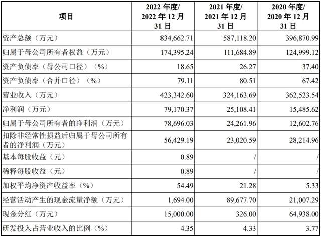 报告期内(2020年、2021年、2022年),中圣科技营业收入分别为36.25亿元、32.42亿元、42.33亿元,归母净利润分别为1.26亿元、2.43亿元、7.87亿元。