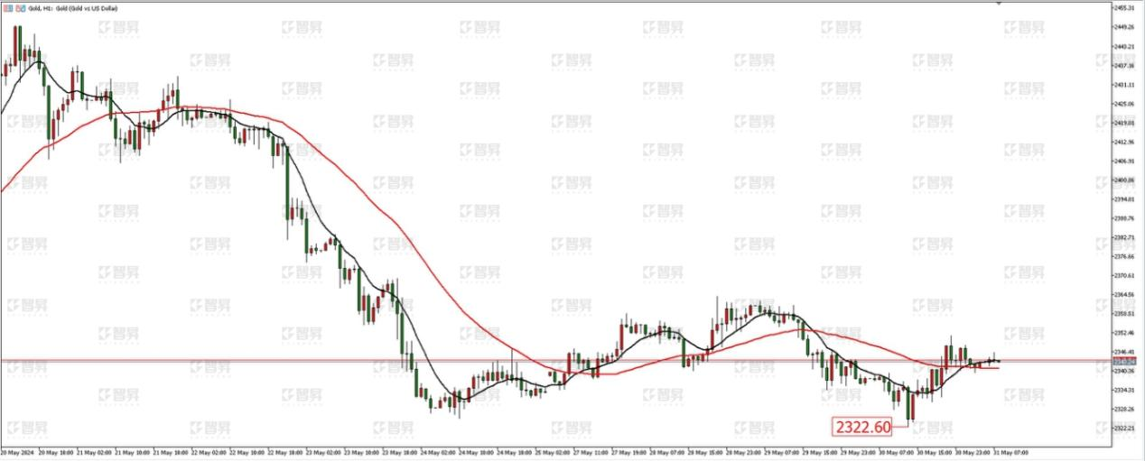 技术面:昨日(5月30日)金价盘中出调整新低,并且先下后上收盘单针探底阳线,止跌意味浓厚。技术指标上看,出现止跌K线且价格站上55日均线,加之MACD背离,看好多头今日有所表现。