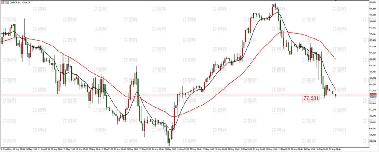 技术面:油价昨日继续下跌,过去两个交易日跌幅超过3%。日线上涨技术形态走坏,价格跌破13日均线,MACD零轴下方再次拐头向下。重点关注77.99美元日线多空分界。