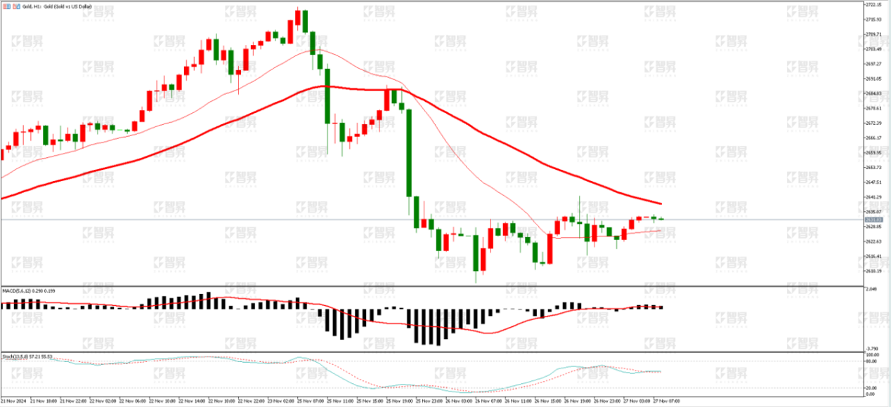 黄金价格走势图:黄金小时图