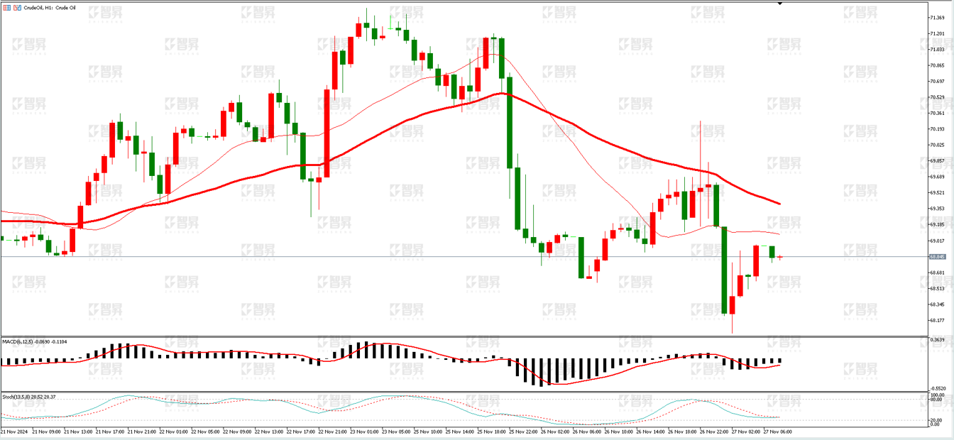 技术面:日线上,行情处于20日和62日均线下方运行,整体偏弱势。4小时线上,行情反弹在20日均线承压走弱,警惕油价再度走弱风险。日内关注上方70美元一线压力,下方关注67美元一线支撑。