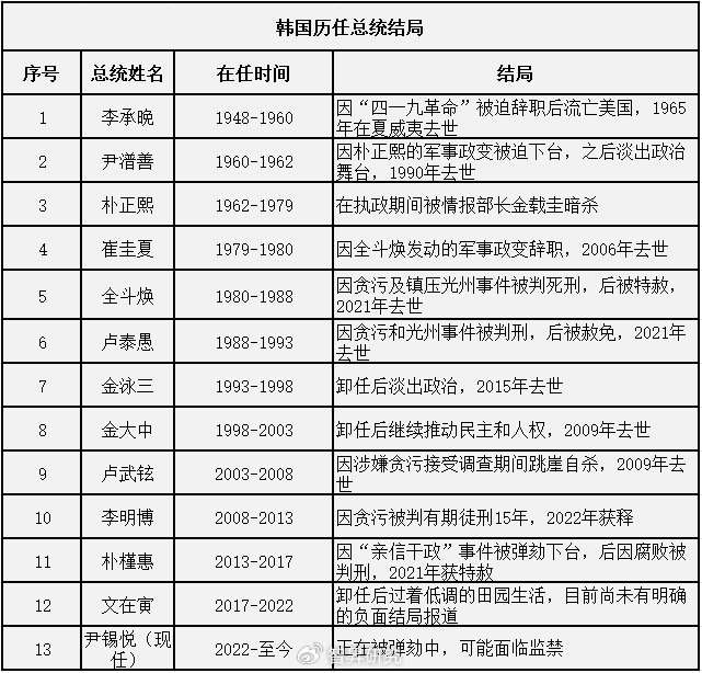 这就不得不提到韩国总统的青瓦台魔咒。历任韩国总统,几乎没有一个总统能有善终。前总统文在寅卸任之后在家赋闲,一度令市场期待其逆转韩国总统命运。可尹锡悦此番折腾表明,这是不可能的,其下场可能并不乐观。