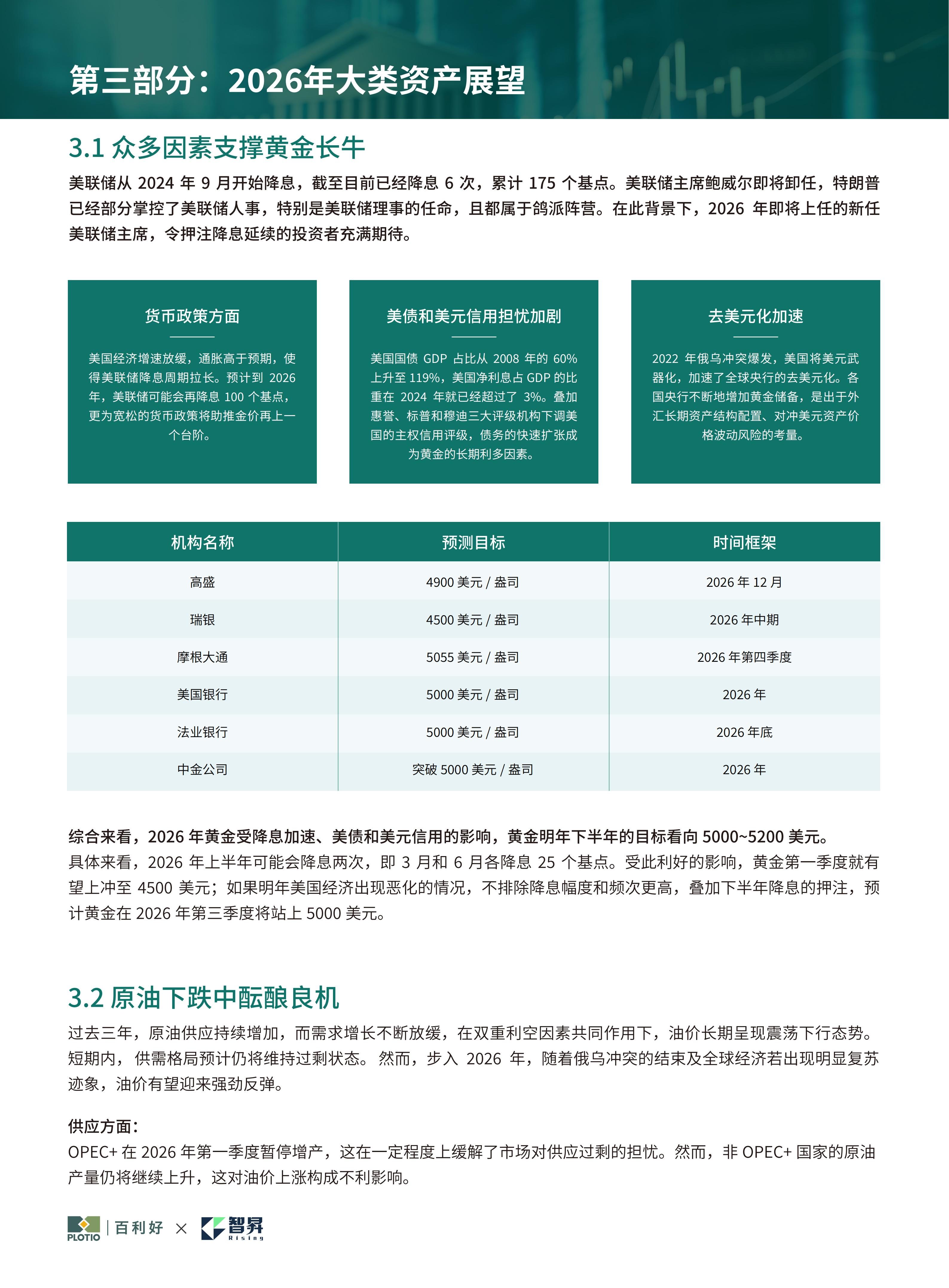 ▪️ 黄金:作为避险与抗通胀核心标的,降息周期下配置优先级提升,目标 5000 美元 / 盎司