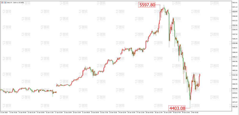 技术面:黄金上周周线收长上影线的阴线,昨日(2月2日)延续回调走势,最低触及4403美元。小时图来看,止跌的可能性增大,日内下方关注4675美元的支撑。