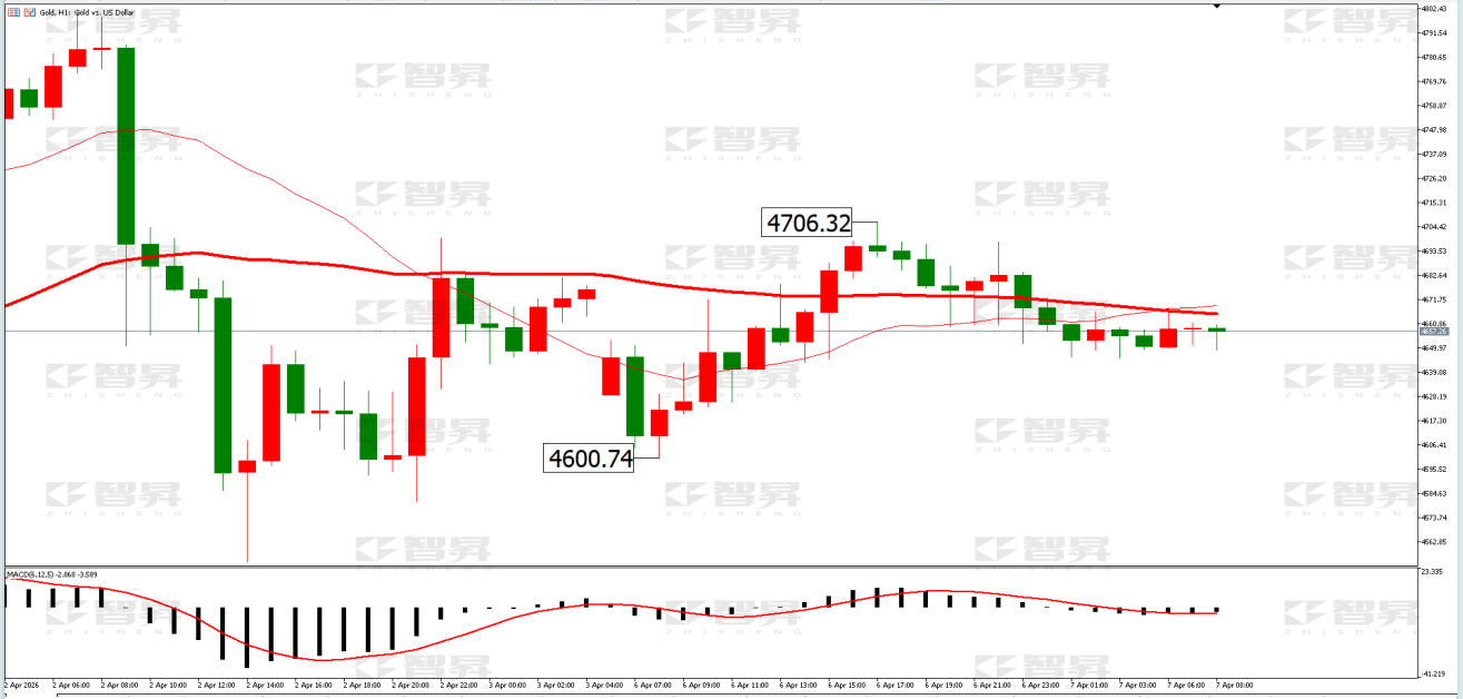 技术面:日线上,此前行情反弹在20日均线遇阻,短期需要警惕金价回调风险。短期关注下方4600一线支撑情况。