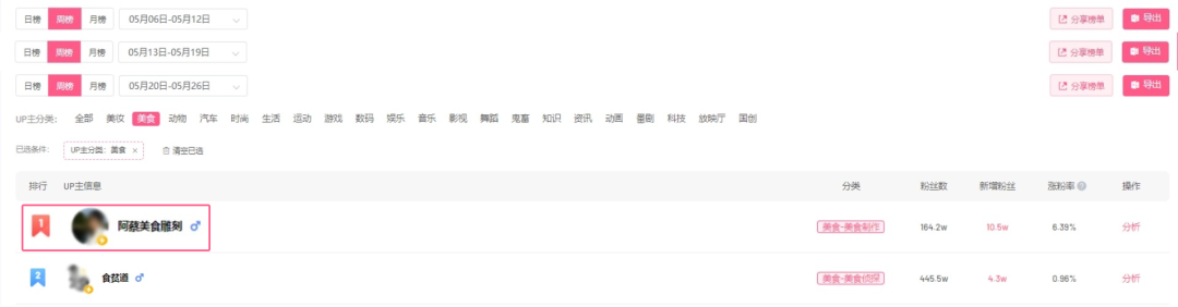 这支作品发布后,UP主再掀一波涨粉热潮,短短两周狂揽75.5w粉。这一成绩不仅让UP主赢得了极高的人气,更推动他连续三周登上美食涨粉榜TOP1。