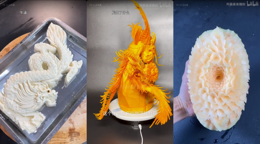 每道菜无论是食材的搭配还是烹饪技巧的运用,都展现出高超的厨艺,特别是UP主的刀工,更是让人叹为观止。考古账号-阿蔡美食雕刻,初期视频内容主要是展示一些复杂的食材雕刻技巧,如将豆腐雕刻成巨龙、南瓜雕刻成凤戏牡丹等。