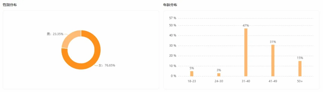 温情的家庭生活,加上日常美食的诱惑,让账号成功吸引到了潜在的消费群体,从粉丝画像上看,@富牛牛76.65%为女性用户,其中31-40岁用户占比达到47%。