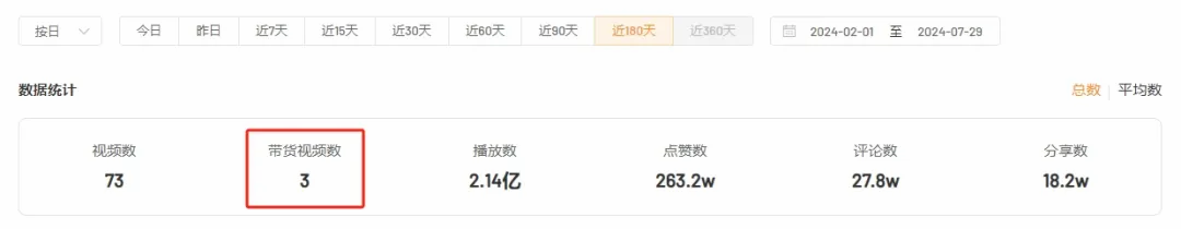 目前来看,@富牛牛发布带货视频的频率较低,近180天以来仅有3条带小黄车链接的视频,用质量取胜,这也有利于维护账号调性和口碑。
