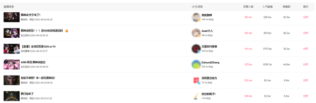为了捕捉更多用户的眼球,各领域UP主纷纷第一时间开直播与猴哥重走西游路,来抢占第一波流量。在上周直播热榜中,有关黑神话的直播场占据绝大多数,无论是低粉UP主,还是潜力腰部达人,都承接住了这波泼天流量。