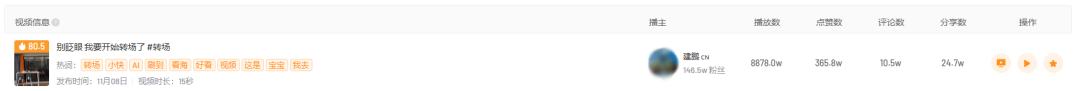 1、暴涨8800w超高播放,“丝滑转场”引爆快手