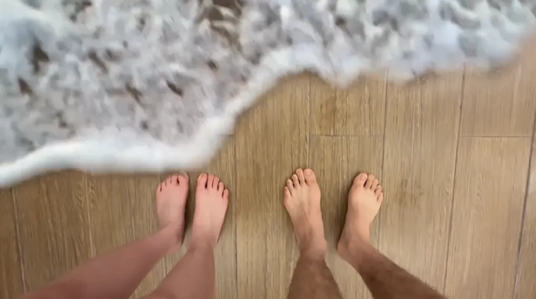 视频中,画面初现客厅场景,紧接着镜头下移,客厅地板丝滑转场海浪沙滩。随后,镜头缓缓上移,海平面上渐渐显现出一个女孩的背影,更是将氛围感直接拉满。