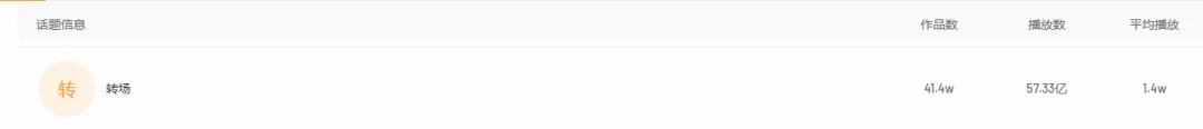 据飞瓜数据统计,“#转场”视频标签作品数多达41.4w,总播放数超57亿,可见网友对于此类创意视频内容的强烈兴趣和喜爱。
