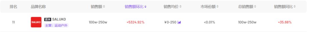 从「SALUKO」月销售额的变化趋势可以看出,品牌在1月以及10月的销售额成绩凸显,均在100w以上。