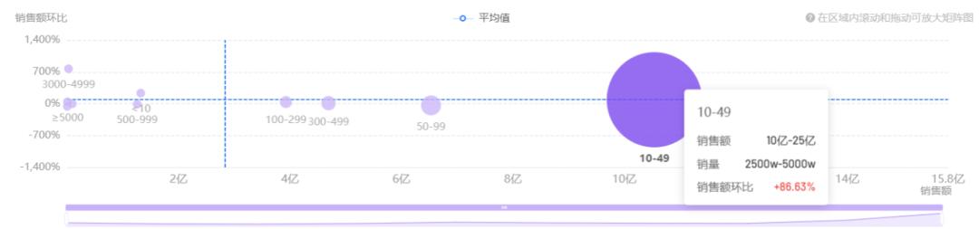 查看“踏步机/中小型健身器材”这一品类的24年价格带分布,可见“10-49”这一价格区间的销售额位列TOP1。