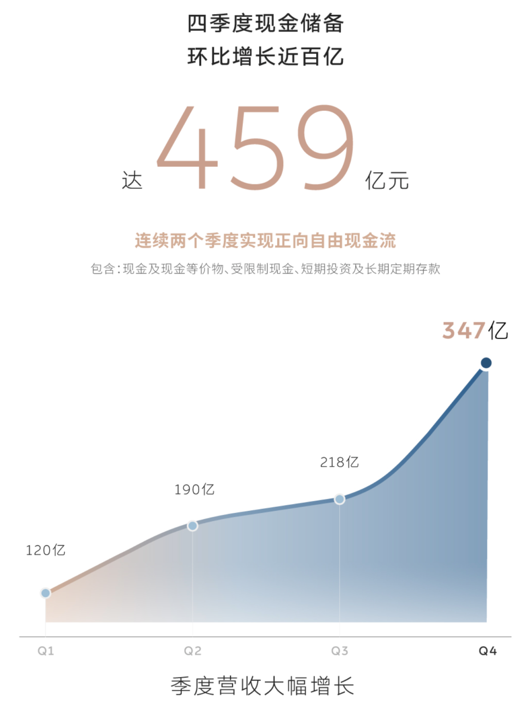 数据显示,蔚来2025年第四季度总营收达到了346.5亿元,这一数字不仅同比大幅增长了75.9%,环比也激增了59%,一举刷新了蔚来成立以来的单季营收最高纪录。