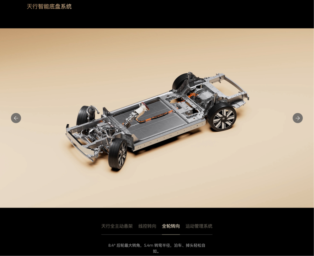 蔚来ES9直接把旗舰轿车ET9上的“天行智能底盘”三件套搬了过来,线控转向、全主动悬架、后轮转向,全系标配。这三项技术单独拿出来,行业里偶尔也能见到,但同时集成在一台量产SUV上,目前有且仅有蔚来做到了。