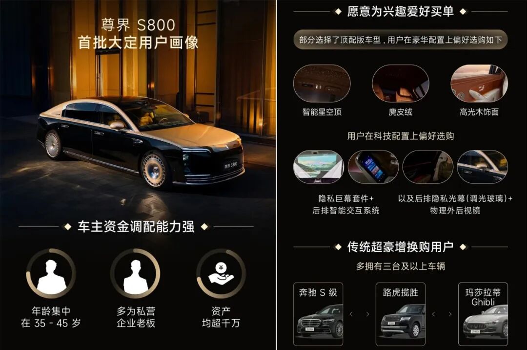 尊界S800走的是圈层认同路线。根据车主调研数据,车主几乎体验遍了市面上主流的超豪华品牌,是传统豪车领域的深度体验者,却在选购尊界S800时表现出了“极短决策链路”的特征。