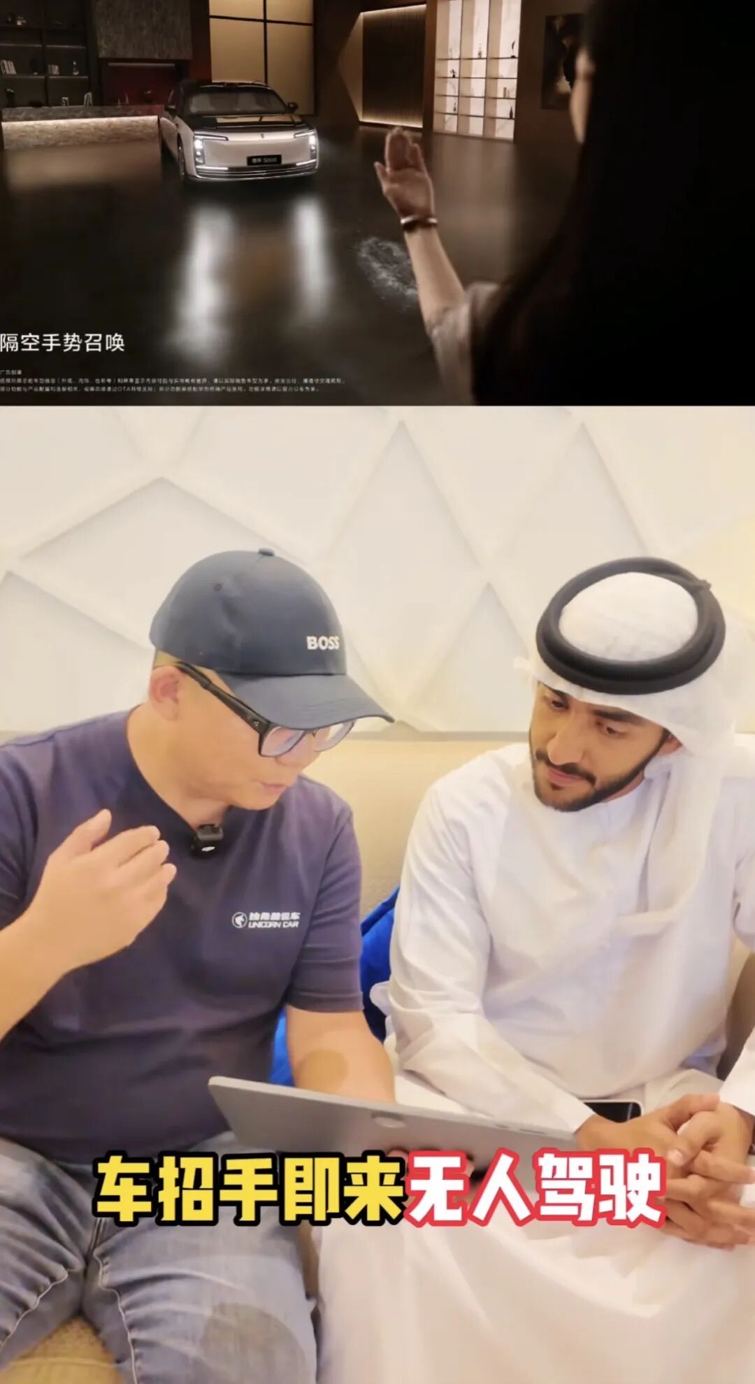 比如就有博主把一辆尊界S800开到了中东,并向阿联酋拉斯海马王子演示了“隔空手势召唤”等功能,不仅惊艳了一众富豪,甚至还有人表示想要加价200万元立刻买到这辆车。