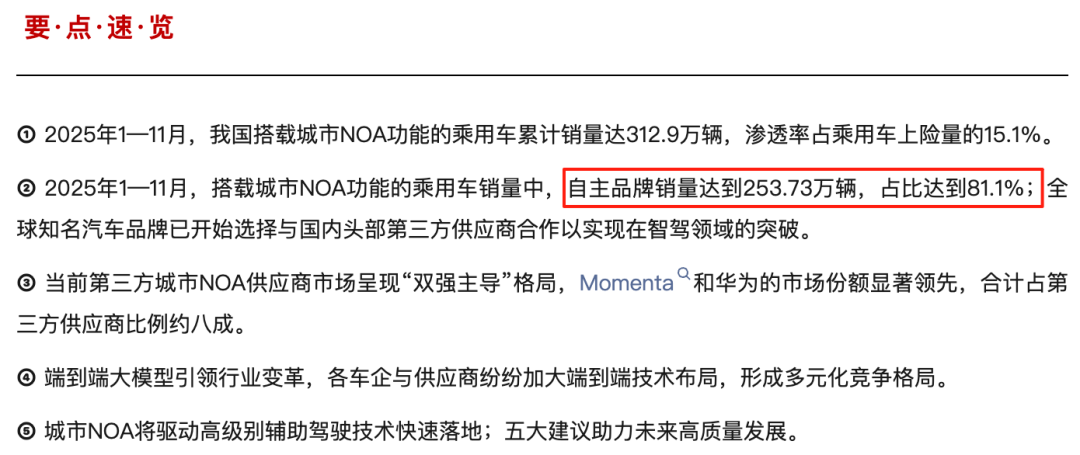 供应商的品牌本身已经成为一种消费信任背书。数据显示,2025年搭载城市NOA功能的乘用车中,自主品牌销量达253.73万辆,占比81.1%——这背后,本土供应商的技术能力功不可没。