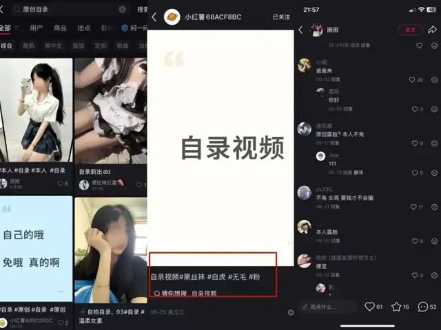 此前揭露的问题依然存在,但更让人需要注意的是一个新问题,在小红书搜索“原创”“原创自录”等关键字,会出现大量笔记。标题封面让人浮想联翩,评论区不少评论“女高”“原创露脸”“本人露脸”的评论。
