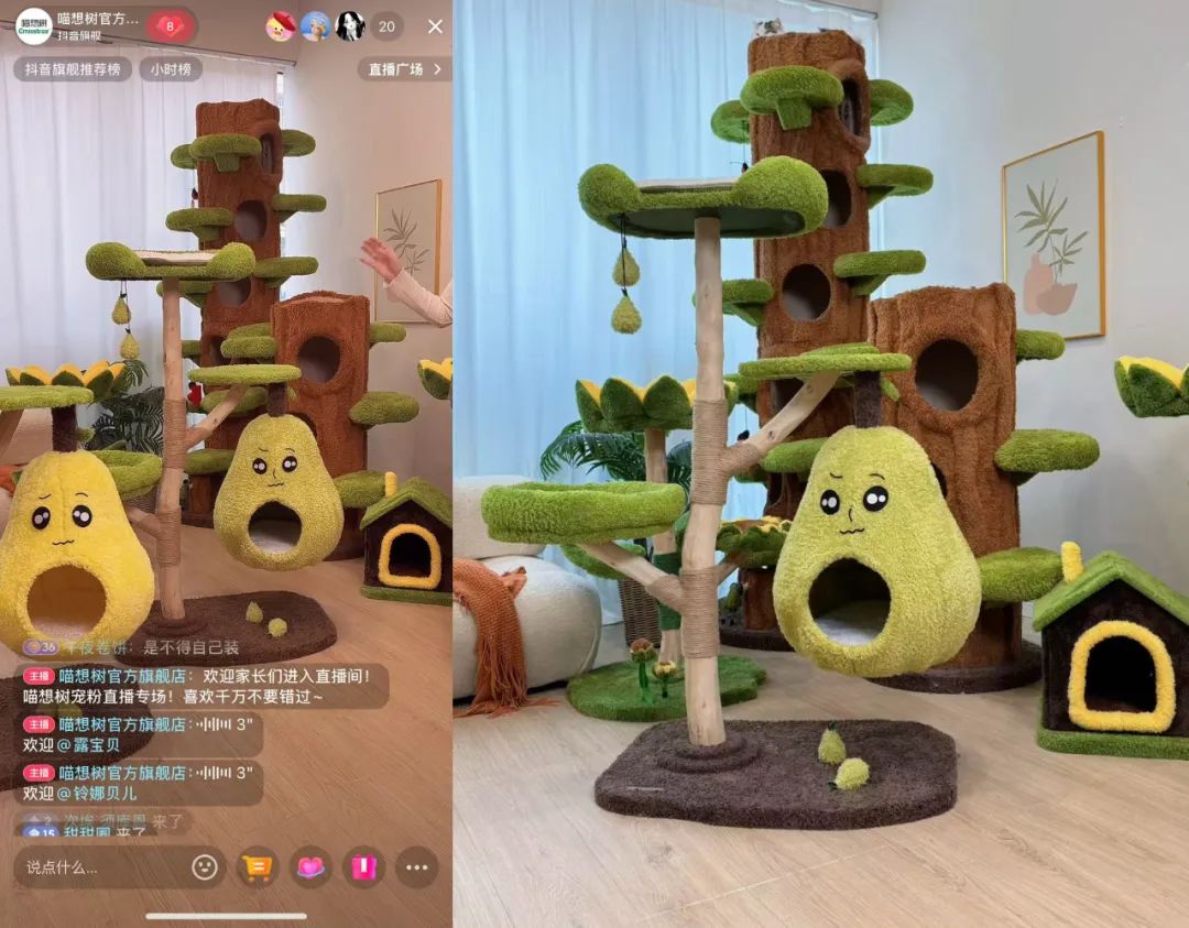 一个典型的例子是“小户型猫爬架”的诞生。过往直播过程中,许多租房用户表示,喜欢喵想树的产品,但普通款爬架对他们来说太占空间了。团队注意到这一需求后,迅速调整产品线,推出适合小空间的猫爬架,并结合短视频和直播进行推广。结果,这款产品迅速成为新爆款,成功打破了“高端猫爬架不适合租房族”的认知壁垒。