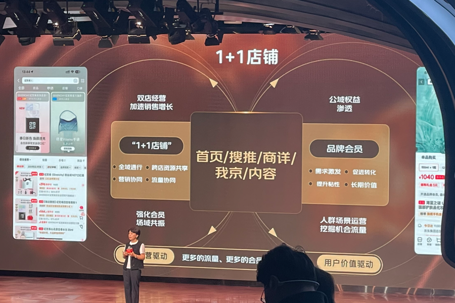 1+1店铺联动,则是指自营店铺+三方旗舰店铺联动。很多品牌可能存在一个认知误区,认为京东自营店和旗舰店会“打架”、会内耗抢流量,但实际上,两者的定位和功能并不冲突,反而是互补关系。