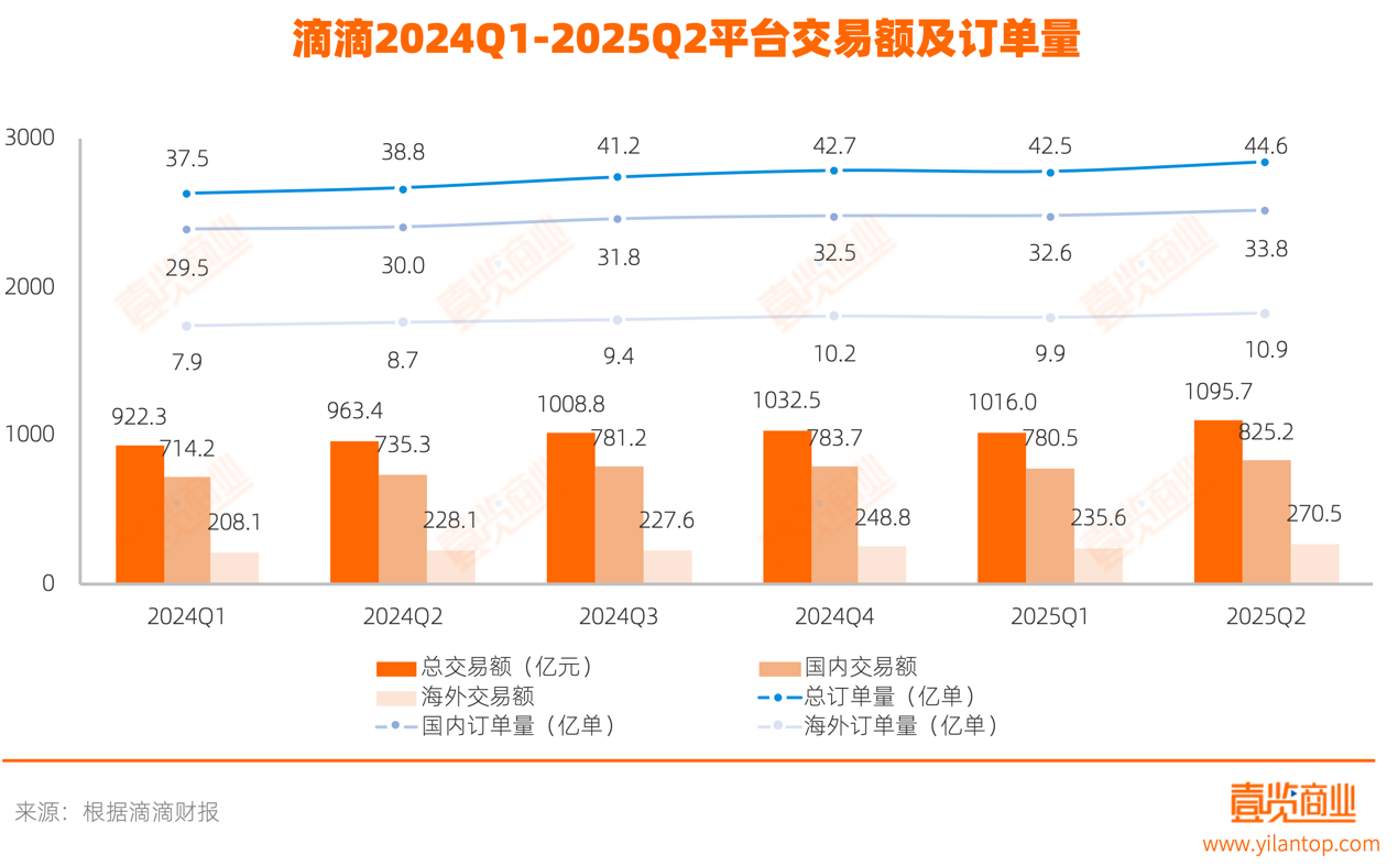8月28日,滴滴发布了2025年第二季度财报。财报显示,滴滴第二季度核心平台总交易额(GTV)达到1096亿元,固定汇率下同比增长15.9%,已连续四个季度单季GTV破千亿;总订单量达到44.64亿单,同比增长15.2%。其中:中国出行GTV为 825亿元,同比增长12.2%,订单量为33.76亿单,同比增长12.4%;国际业务GTV为271亿元,固定汇率下同比增长27.7%,订单量为10.88亿单,同比增长24.9%。
