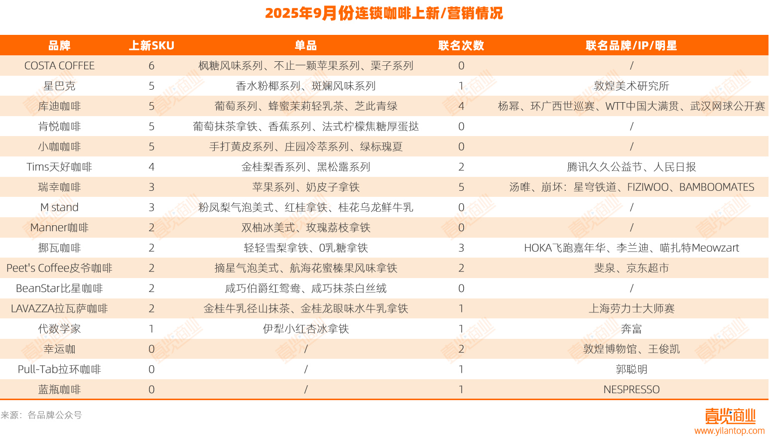 与此同时,COSTA、肯悦、Manner等品牌在9月并未开展联名活动,更倾向于依托自身品牌影响力与产品创新驱动增长,显示出不同品牌在营销路径上的差异化选择。