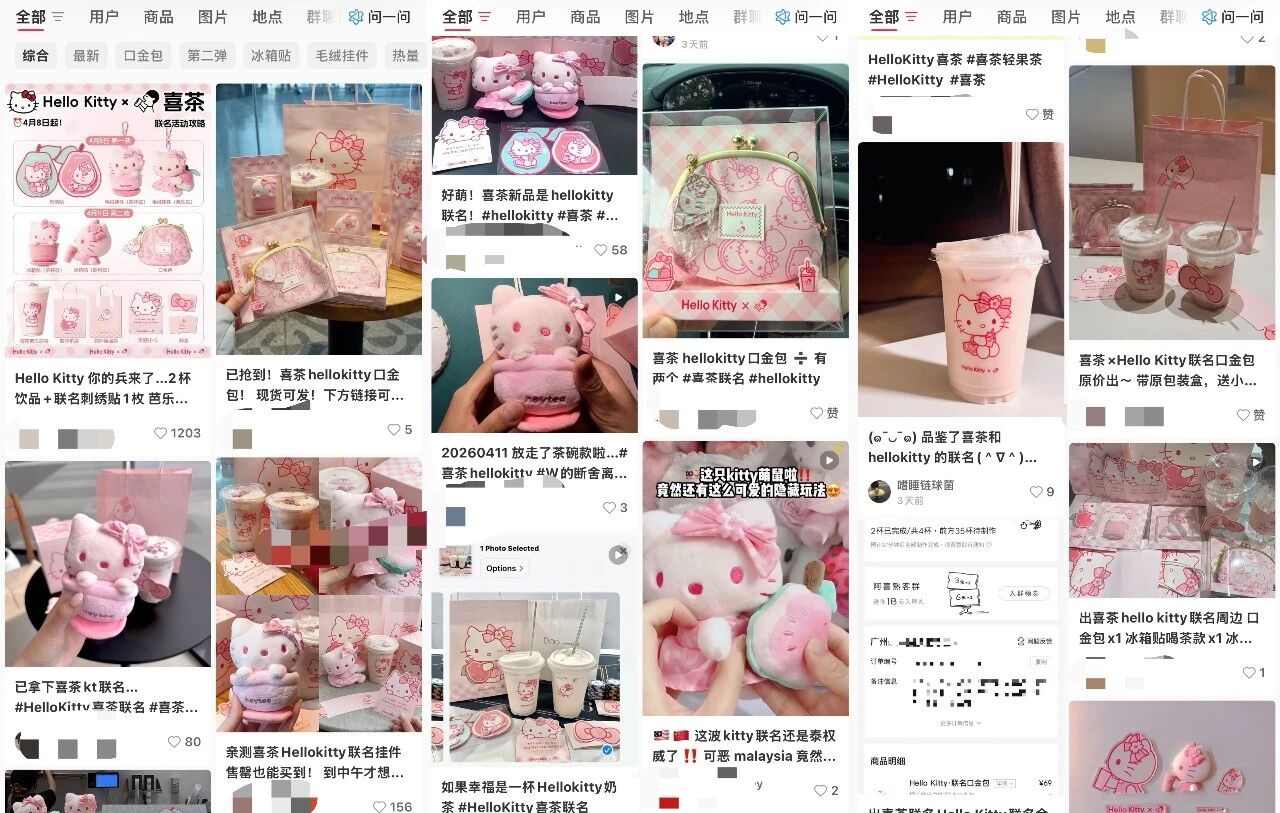 而喜茶与Hello Kitty最新联名推出的“樱花芭乐白桃”,更是以加入樱花液的三地乌龙拼配青乌龙茶汤,融合红心芭乐与白桃,多重粉色元素叠加,完成从产品风味到视觉符号的全面概念升级。
