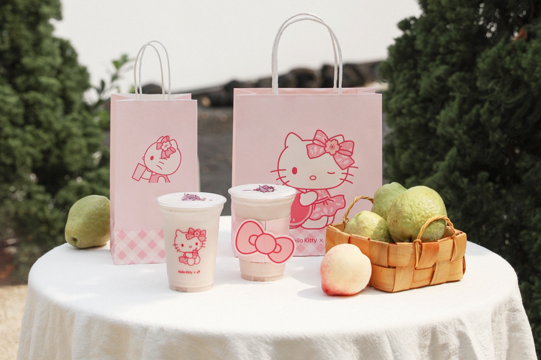 这次的主角是芭乐,一种长着青涩外皮、藏着粉红内心的热带水果。喜茶为它找来了Hello Kitty这一绝配搭档。双方继去年冬天的“银粉联名”后,今春再度携手,推出全新芭乐粉新品——樱花芭乐白桃。