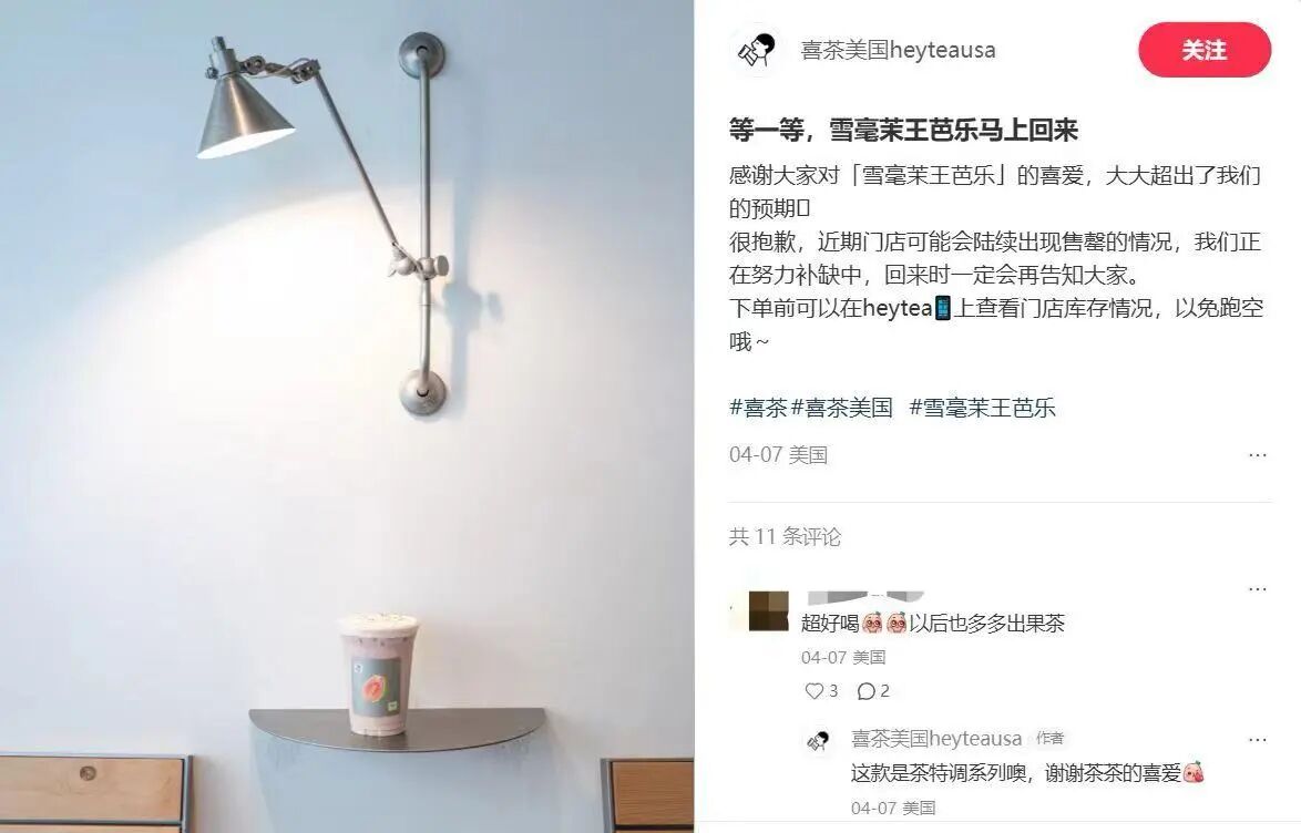 而喜茶的布局还不止于国内市场。2026年3月,喜茶将芭乐雪毫茉王作为首款海外茶特调推向美国市场,迅速出现售罄,店均首日销量逼近千杯。这意味着芭乐的吸引力具有跨文化普适性。当一颗原本在中国流行的热带水果在美国消费者中走红,喜茶也在产品创新维度给整个行业出海之路提供了指引。