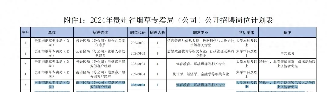 近日,一则招聘信息在网络上引起了广泛关注。贵州省烟草专卖局(公司)下属的南明区局(分公司)和云岩区局(分公司)招聘卷烟客户服务部客户经理岗位,明确要求应聘者为体育教育、运动训练等相关专业,并且特别注明具有足球或篮球国家二级运动员以上资格者优先。这一招聘信息迅速引发了公众的质疑,许多人认为这样的招聘条件更像是为特定人选量身定制的“萝卜坑”。