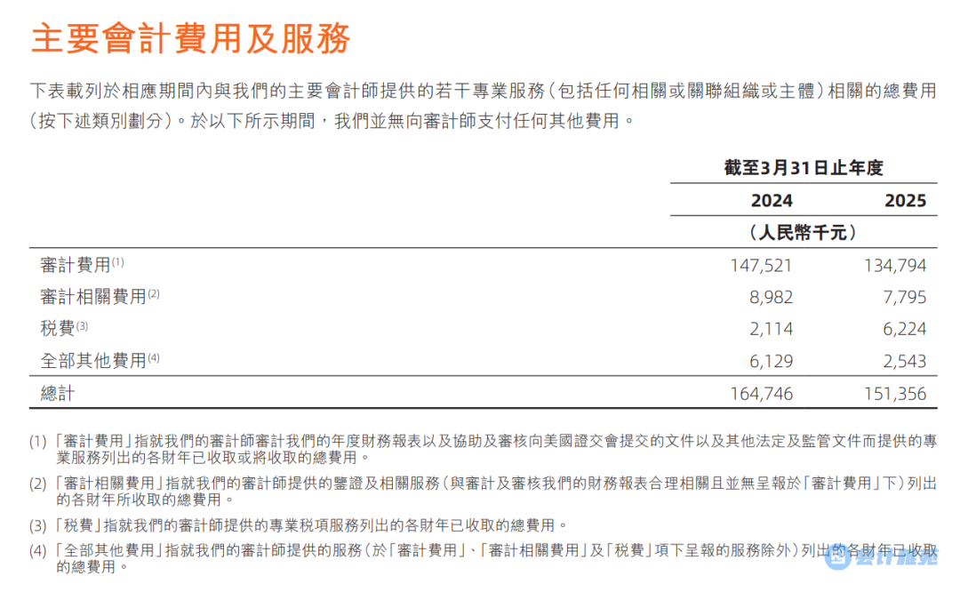 年报显示,2025财年阿里巴巴共支付给普华永道1.51亿元专业服务费,较2024财年的1.65亿减少8.5%。