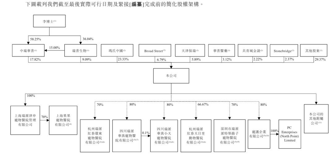 瑞派宠物的单一最大股东为李守军,其通过中瑞华普和瑞普生物间接控制公司26.91%的股权。其他主要投资者中,玛氏中国持股比例23.33%,Broad Street持股6.79%。