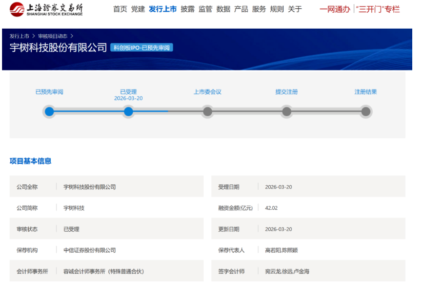 宇树科技IPO获上交所受理 拟募资约42.02亿元