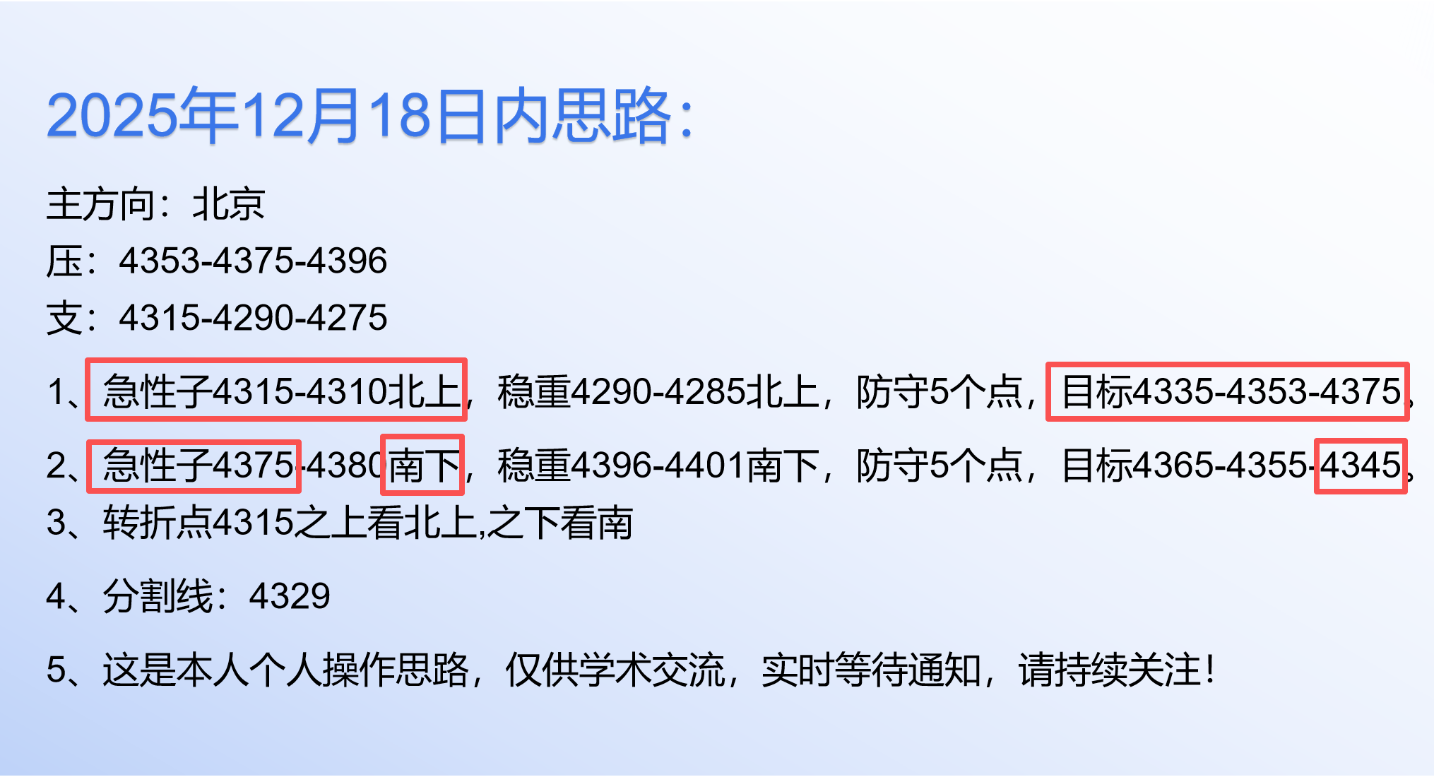 1、急性子4338-4343南下,稳重4354-4359南下,防守5个点,目标4307-4290-4275。