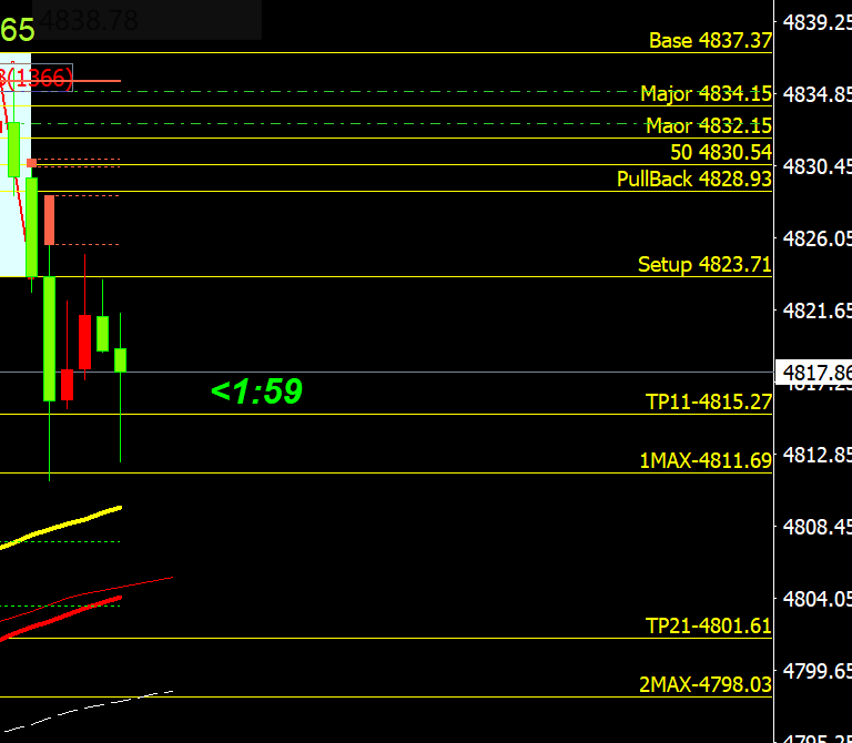 回到今日的黄金市场,开盘后黄金价格从 4787 高走到 4837,这一走势清晰地显示出 4785 位置得到了明显的支撑。基于这一支撑情况,我们今日的操作策略是继续逢低北上,将目标价位设定在 4850 和 4870,若能成功破位,则进一步看 4890 上方。不过,市场总是充满变数,早间 5 分钟和 15 分钟的技术图表显示出现了南下结构。面对这种情况,我们顺势而为,在 4833 - 35 选择先进行一波南下操作,目前价格已抵达 4811,成功获利 21 个点。
