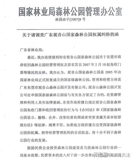 近日,东莞市观音山森林公园开发有限公司向广东省人民政府特快专递了《全国首家民营国家级森林公园广东观音山国家森林公园关于恳请作为自然保护地予以保留的紧急情况反映》。该信函是对观音山森林公园在不知情的情况下拟被撤销自然保护地的情况反映,也反映了南中国旅游胜地、首家民营国家级森林公园遭遇地方打压的无奈呼吁。