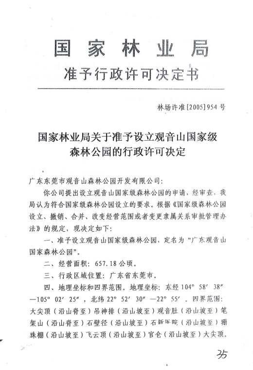 但是,观音山森林公园的发展,却异常艰难曲折。由于不愿接受地方主管部门的潜规则,不愿官商勾结获取不法利益,不愿寻求所谓保护伞,自1999年至今25年来,观音山森林公园遭到东莞市、镇两级政府及东莞市林业局等相关部门的不断打压、报复。直至今年10月15日,东莞市林业局、东莞市政府竟借国家开展自然保护地整合优化之机,通过层层上报,将观音山森林公园列入了国家林业和草原局、国家自然资源部公示的予以撤销的自然保护地名单之列。