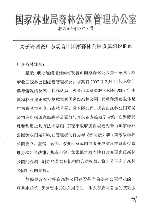 1、东莞市林业局、樟木头镇政府不支持申报国家级森林公园,甚至直接发文要求撤销国家级森林公园许可